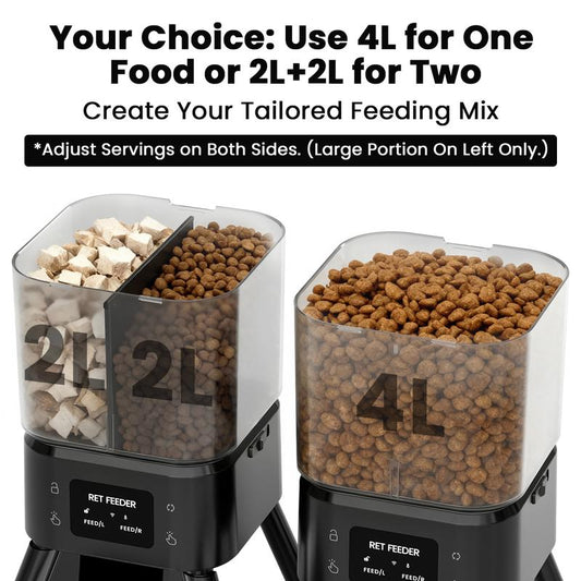 【Geoorood】Dual Chamber Automatic Cat Feeder, 4L (2X2L) Smart APP Controlled Pet Feeder for Two Food Types (Dry Food & Freeze-Dried), Battery Powered, with Desiccant Bags & Customizable Portions