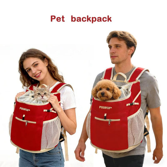 • PUUROF Pet Backpack for Small Pets - Front-Carry Design with Crisscross Straps & Side Pockets - Cozy & Spacious Chest Carrier Bag for Shopping & Cycling - Ideal for Teddy, Schnauzer, Bichon Frise